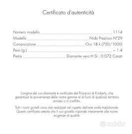 1 diamante: 0.07 carati - Oro bianco (18 carati= 750/-): 1.4 g.