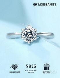 ✅NUOVO✅Anello di Moissanite con Certificato in Argento Sterling 925.