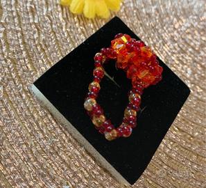 Anello realizzato con perline di colore rosso, giallo e arancione.
