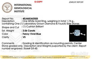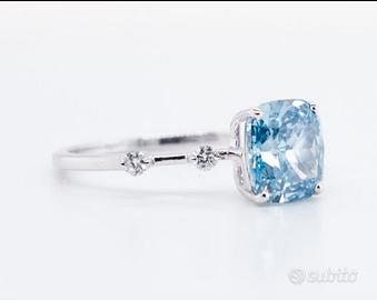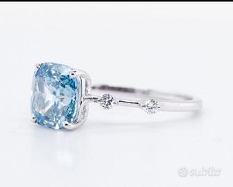 ANELLO ORO BIANCO 14ct con diamante Lab grown Fancy vivid blue (molto raro) e 4 diamanti circostanti .