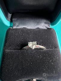 Vendo Anello con diamante singolo a forma di cuore, acquistato in Boutique TIFFANY & CO con tutto il CORREDO ORIGINALE ossia la “carta d’identità” del diamante. Montatura in platino. 0.4 carati