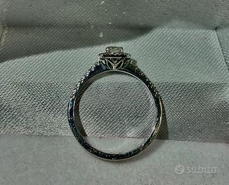 Anello in oro bianco e diamanti, praticamente mai indossato, circa 24 pietre totali di cui la più grande di 0,25ct circa. Disponibile prima della vendita a messa a misura e lucidatura a mio carico.