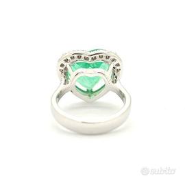 Bellissimo anello in oro bianco 18 carati (750/000) peso totale 7,7 grammi, con smeraldo Colombiano e diamanti a contorno.