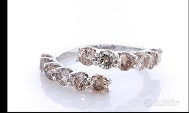 Anello in oro bianco 14 kt con 12 diamanti naturali taglio brillante per un totale di 1,76 ct. Diamanti naturali colorati con certificazione IGI (International Gemological Institute). Design moderno aperto molto luminoso, condizioni nuove. Caratteristiche: •Diamanti naturali: 12 •Caratura totale: 1,76 ct •Taglio: brillante rotondo •Certificato IGI incluso •Oro bianco 14 kt •Peso: 2,84 g •Misura: 54 Anello elegante e importante, molto brillante dal vivo. Valore commerciale superiore. Prezzo leggermente trattabile. consegna a mano in provincia di Ragusa o spedizione assicurata