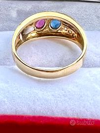 Anello vintage anni 80/90 con diamanti rubino zaffiro oro bianco e giallo 18 kt