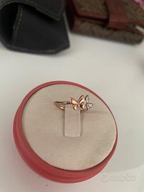 Anello Dodò in oro rosa con farfalle e brillanti veri, misura 52 in ottime condizioni praticamente nuovo con certificato di garanzia.