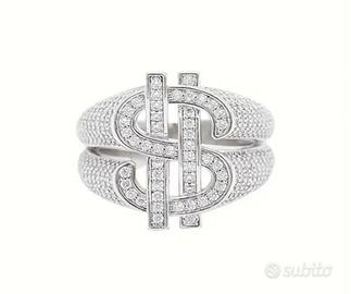 🔥 Anello con segno dollaro $, ice ghiacciato con strass in stile trap hip pop NUOVO MAI INDOSSATO PERFETTO, 18 mm