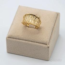 Anello donna in oro giallo 18 kt grammi 3,5 a fascia. La lavorazione è lucida e brillante . L’ anello misura n°16. Prodotto made in Italy munito di marchio di fabbrica come da legge e completo di confezione e certificato di qualità rilasciato dalla Gioielleria.
