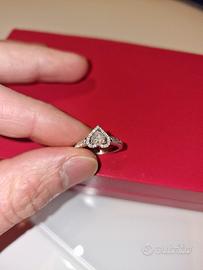 anello in oro bianco 18k con pietra centrale a forma di cuore.