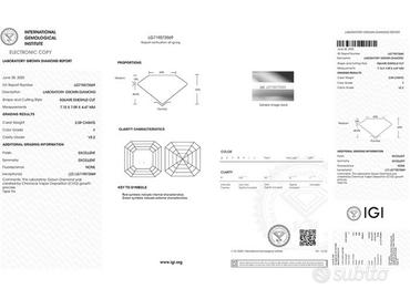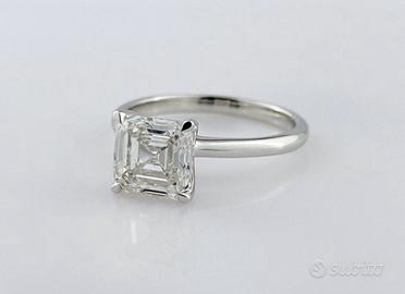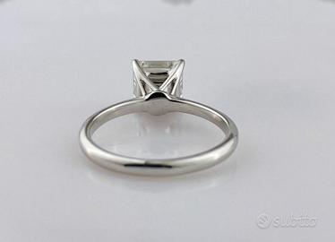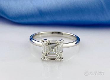 Anello di fidanzamento Nuovo in oro bianco 14 ct. creato nel 2021 con diamante coltivato in laboratorio da 2,09 ct. con certificazione (IGI) Internazional Gemological Istitute di eccelente grado di purezza, taglio smeraldo quadrato.