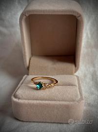 Anello delicato con pietre simil smeraldo e simil diamanti. Materiale acciaio inox.