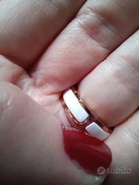 Vendo anello dorato con nastro in ceramica e 3 mini zirconi bianchi. Due misure disponibili: 6+ 8 US,( 12+ 14 IT).