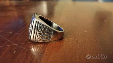 Vendo anello con sigillo a corona e collana con disegno a coda di drago entrambi in acciaio inox ( steel) .