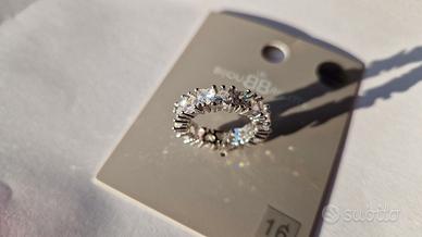 Anello color argento realizzato con tante piccole pietre di zirconia cubica a forma di cuore molto brillante.