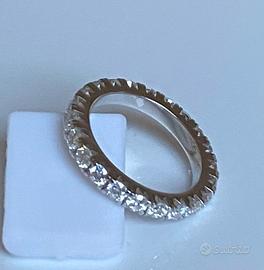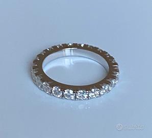 Anello Eternity in argento S925 con brillanti in Moissanite 0,1 CT ( 3 mm ) ciascuno, totale da 19 a 24 pietre a seconda della misura.
