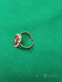 Anello argentato con fantasia di diamantini brillanti e rossi