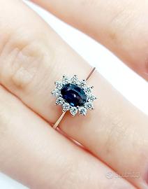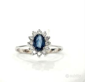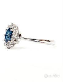Anello con Zaffiro ovale 0,55 ct contornato da diamanti 0,20 ct in Oro Bianco 18kt ( 750 ) – circa 2,00 gr