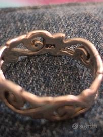 Anello in argento Sterling con design motivi a spirale, volute e filigrana che creano una struttura traforata e decorativa. Con punzonatura 925. Vintage anni 80, misura 18. Unisex.