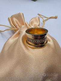 Splendido anello a fascione spesso in oro gialli 18 carati stile Bvlgari con una striscia di 38 diamanti naturali di taglio brillante 0,85 carati totali.