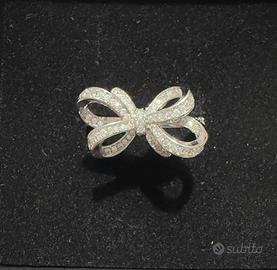 Elegante anello a forma di fiocco, impreziosito da scintillanti zirconi.