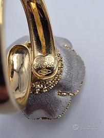 Bellissimo anello in oro giallo massiccio 18 carati di originalissima lavorazione a rosa smaltata molto raffinata perlata con bordini luminosi. Femminile e di classe.