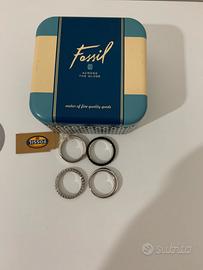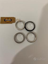 Anello fossil composto da 4 anelli si posdono portare insieme oppure separati Tre colore argento uno nero Nuovo