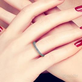 Nuovo anello girodito in oro bianco 18 kt con diamanti naturali taglio
