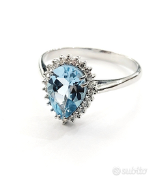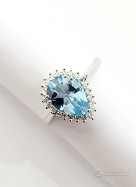 Anello fantasia con Acquamarina a Goccia Ct 3,40 con contorno di Diamanti bianchi taglio brillante Ct 0,46 18kt-750 grammi 4,65
