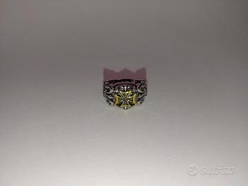 Anello gotico punk Croce portafortuna in lega di zinco. L'anello è nuovo e non è mai stato indossato. Il design unisce elementi gotici e punk con un'estetica forte e decisa. Presenta al centro una croce in rilievo con una finitura dorata e una texture a puntini, incorniciata da ali laterali. È perfetto per chi ama uno stile audace e alternativo, e per aggiungere un tocco unico al proprio look.