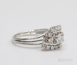 Questo magnifico anello, un autentico tesoro degli anni ’70, incarna l’eleganza senza tempo. Realizzato in pregiato oro bianco 18 carati, la sua lucentezza esalta la purezza dei diamanti incastonati.