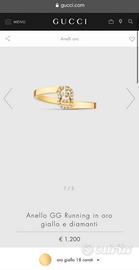 Anello Gucci in oro giallo e diamanti, in ottime condizioni, acquistato sul sito di Gucci, presenta certificato di garanzia e ricevuta d’acquisto. Vendo per inutilizzo.