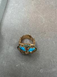 Anello a forma di Gufo color oro e pietre colorate Misura 12