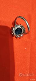 bellissimo anello regina in acciaio inox nuovo mai indossato diametro 19 mm con pietra in cristallo blu