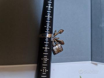 Anello in argento 925 con borsa smaltata e scarpe dorate. Senza scatola.