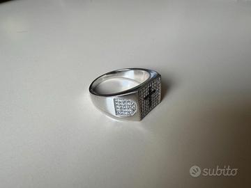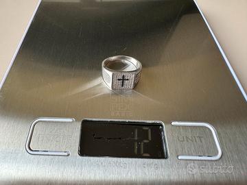 Vendo anello in argento 925 dal peso di circa 12 g incastonato di pietre bianche e nere. La circonferenza interna dell’anello misura circa 6,4 cm e il raggio è pari a circa 2,0 cm. Per qualsiasi informazione o per ulteriori foto non esitate a contattarmi.