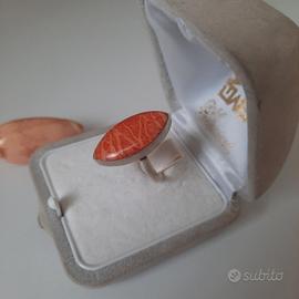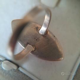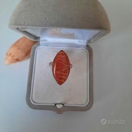 Anello vintage in argento 925 con pietra di diaspro rosso dal taglio marquise, ideale per risaltare la lucentezza della gemma e le sue venature naturali. Diametro: 16,1 mm.