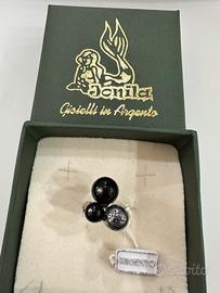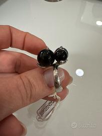 Anello in argento 925 con onice e pietra lavica con astuccio e certificato di garanzia misura 16
