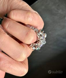 Il pezzo forte? Una cascata di charms in argento e cristalli luminosi nei toni del lilla, verde smeraldo e ambra. Un mix perfetto tra stile bohémien e design contemporaneo.
