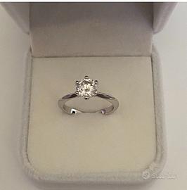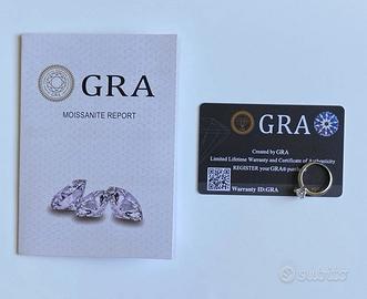 Anello Solitario in Argento S925 con brillante in Moissanite 1 CT Placcato oro bianco 18 CT A scelta tra queste misure: Misura 12-52 Diametro 16,5 mm Misura 14-54 Diametro 17,3 mm Misura 16-56 Diametro 17,7 mm Misura 18-58 Diametro 18,5 mm Certificazione GRA D1.00CT inciso al laser sull’anello Grado di colore D Grado di chiarezza VVS1 Grado di taglio Eccellente Pulimentatura Eccellente Simmetria Eccellente Fluorescenza Nulla