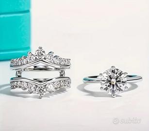 Belissimo anello in Argento S925 con Moissanite da 3 carati (0,9 cm), lussuoso, semplice, elegante. Placato oro 18 carati.
