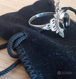 Anello d'argento 925 con pietra ovale in onice nera, nuovo, marca Hellaholics.