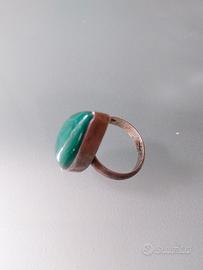 anello in argento con pietra a goccia color verde di diametro 19 punzonato