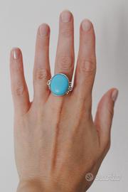 Anello in argento 925 con pietra di turchese di lavorazione artigianale. Per ulteriori info contattare. Spedisco.