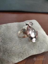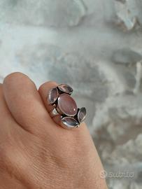 anello in argento Tibetano pietre: quarzo rosa tendente al trasparente cristallino diametro interno 17mm
