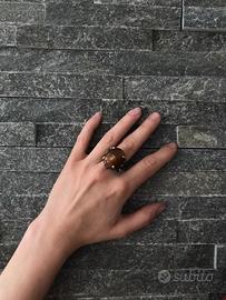 Introvabile anello in argento rodiato black e oro giallo con un enorme quarzo rutilato naturale 24 x 18 mm. e piccole tormaline naturali laterali. Misura 20.
