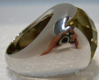 Anello d'argento 925/1000esimi con ring e castone a fusione dal interno cavo, montato a castone un magnifico Quarzo trasparente Cristallo di Rocca color champagne. Bellissima pietra con taglio 1000 facce romboidali.