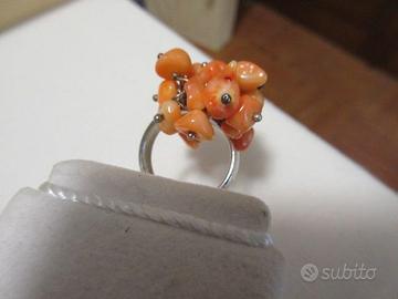 Originale anello in argento e corallo salmone. Misura 16 allargabile .Mai utilizzato. Perfetto