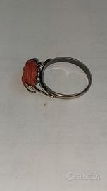 Anello d'epoca in argento con fine rosa in corallo diametro 18 millimetri.