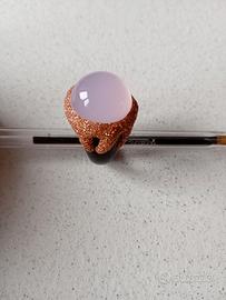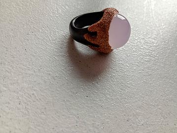 vendo anello fatto a mano in ebano e pietra dura quarzo rosa e glitter. misura 18