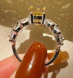 Anello in argento, modello farfalla,con pietra centrale in moissanite gialla 2carati, e laterali bianchi.Misura 17